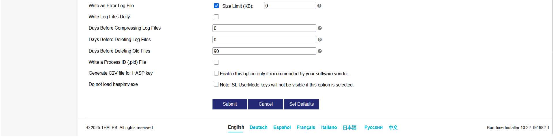 - You now need to configure the ACC so that the Intella system can access the license system to obtain a license. Like in Step 3 above, ensure that the default configuration is in place. If you've made any changes, use the "Set Defaults" button, then the "Submit" button, to reset and save your changes.