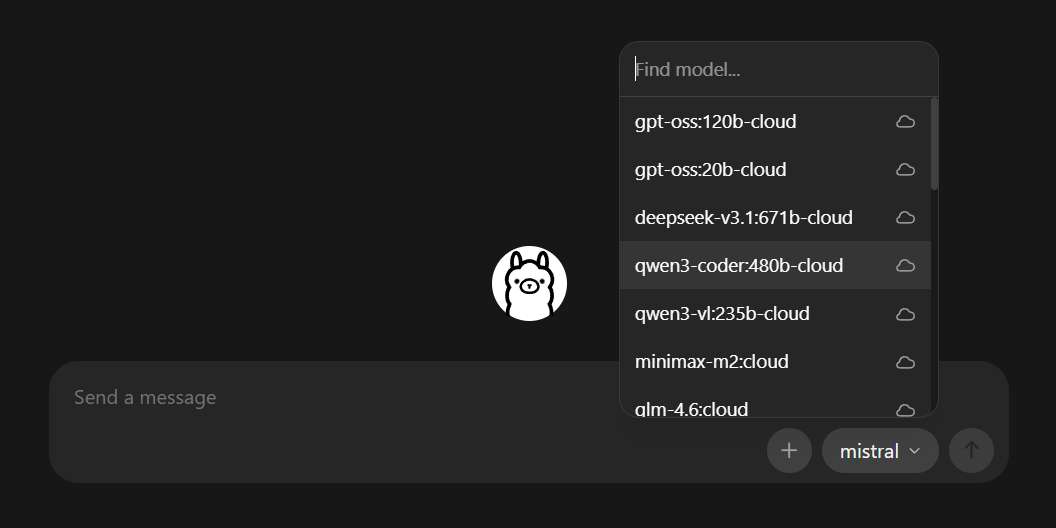 You can also try to find the model you need directly in the Ollama's UI. Writing any prompt to selected model will automatically download it.