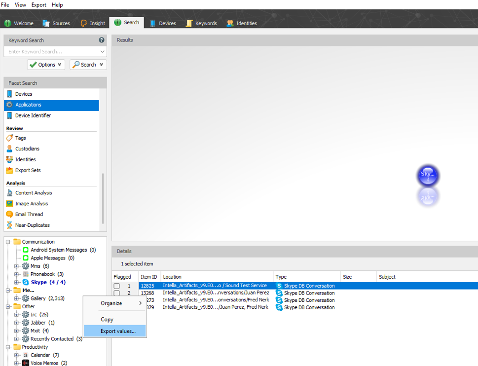 The Applications facet provides a streamlined way to analyze mobile data by organizing applications and their associated content in a clear, structured view. By allowing quick access to app-specific items and flexible sorting and export options, this feature helps improve efficiency and focus during investigations involving mobile device data.